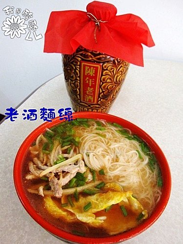 老酒麵線,就是白麵線,裡面加老酒,吃了不會醉,