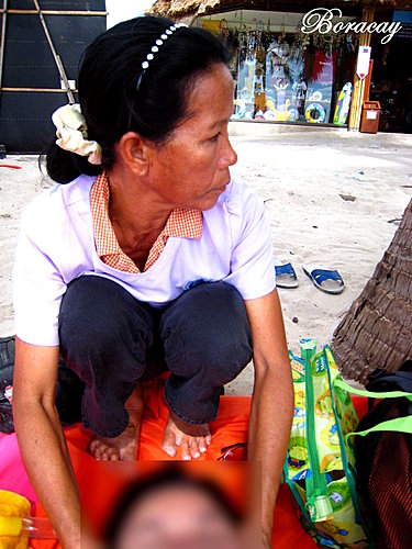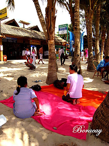 按摩阿婆會在細緻的白沙灘上披上薄薄的布,